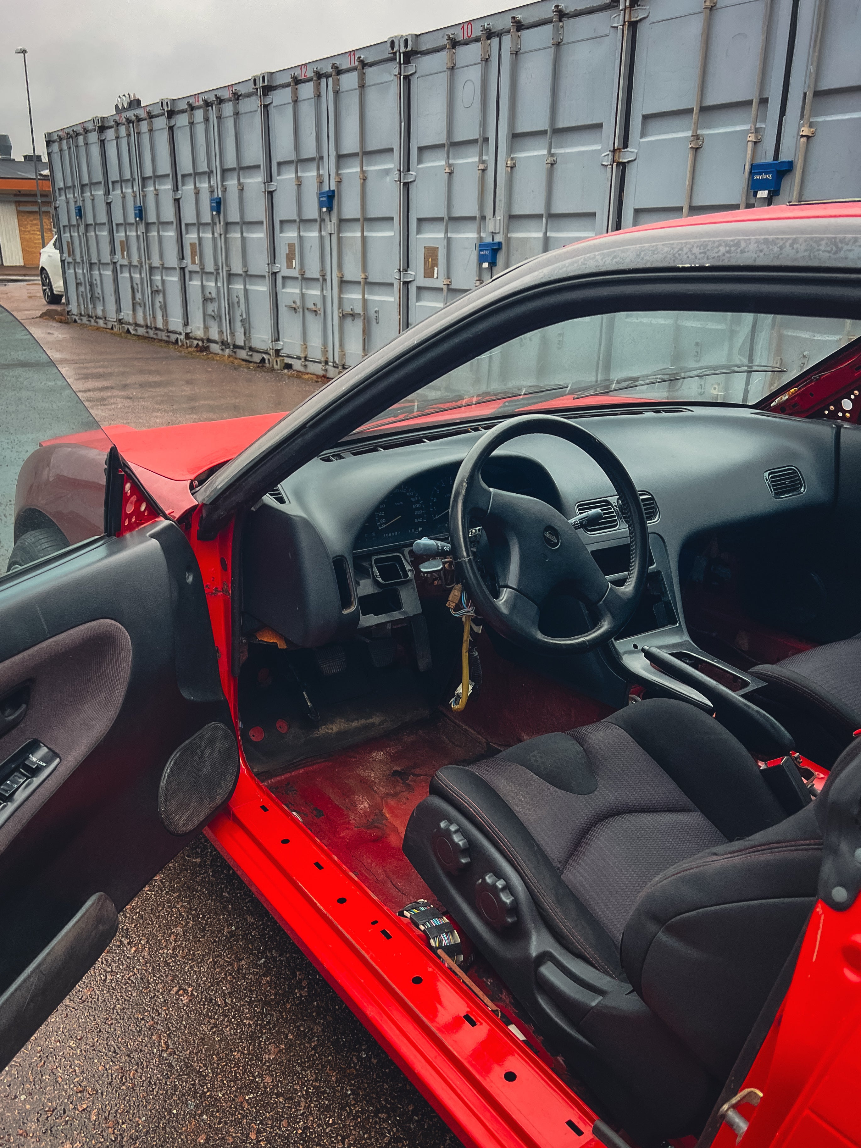 Rullande chassi, 5-bults konverterad, Driftworks framvagn, S14 subframe bak, alla ställbara stag, coilovers, 10x17" fälgar, NISMO stolar m.m.